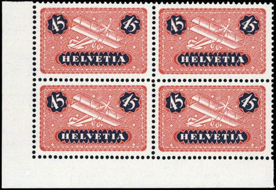 1923, 45 C. Flugpostmarke postfrisch im Eckrand 4-er Block l.u. in der Type "z"
