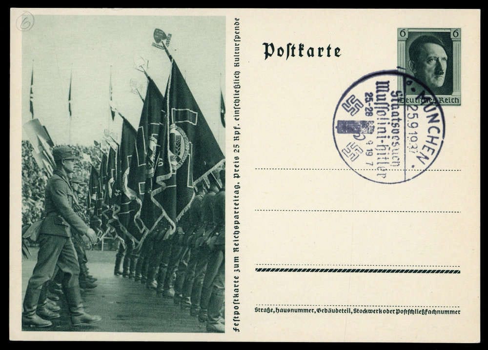 "MÜNCHEN 25.9.37 STAATSTREFFEN MUSSOLINI-HITLER", SST auf phil. 6 Pfg. RPT-Ganzsache