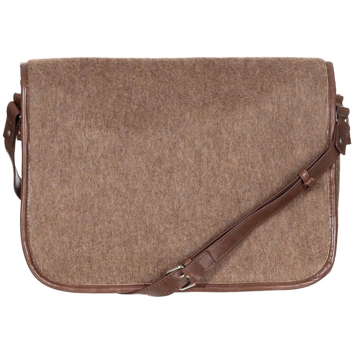 | high quality bag in vintage look made of swiss army blankets length adjustable carrying strap sideways adjustable by straps 2 spacious inner compartments Pocket and zipper pocket inside Dimensions: approx. 40 x 30 x 10 cm (W x H x D) Material: Seams and straps: Imitation leather Upper material: 70% wool, 30% polyester (600g / m²) |