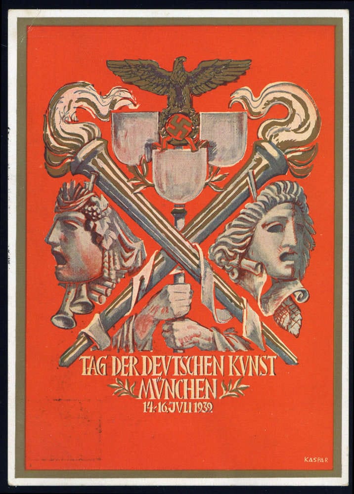 1939, 6 Pfg. München - Tag der deutschen Kunst, avec SST correspondant "MÜNCHEN 16.7.1939", carte avec de légères traces de vieillissement.