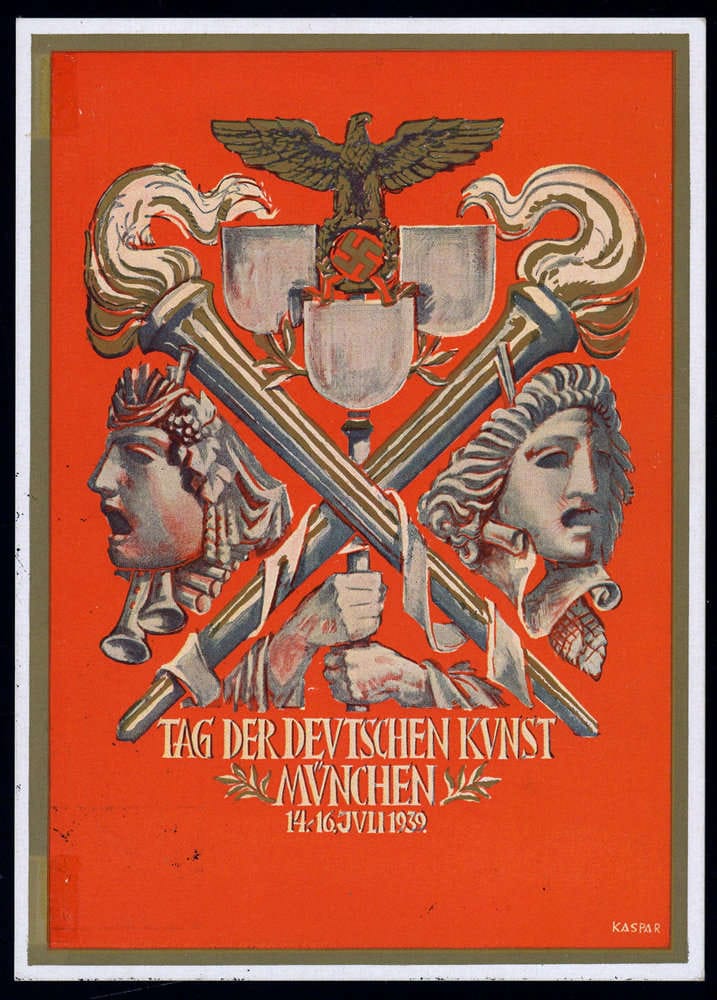 1939, 6 Pfg. Hindenburg - Journée de l'art allemand, non utilisé avec le SST correspondant "MÜNCHEN 16.7.1939", légères traces de fixation côté image.