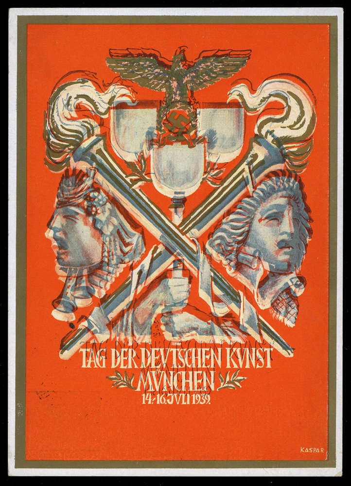 1939, 6 Pfg. Hindenburg "Tag der Deutschen Kunst", SST München, variante intéressante "impression bleue décalée vers le haut"