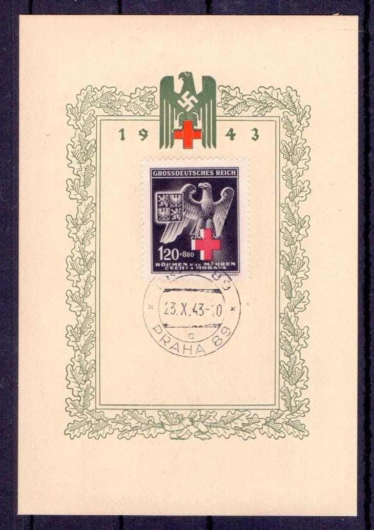 1943, Croix Rouge sur carte spéciale "PRAGUE 23.X.43"