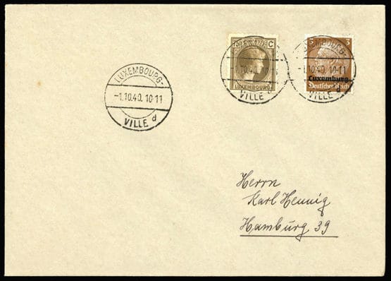 1940, 3 Pfg. Hindenburg avec Luxembourg n° 28 ensemble sur lettre de "LUXEMBOURG VILLE 1.10.1940", adressée à Hambourg, légères traces de vieillissement.