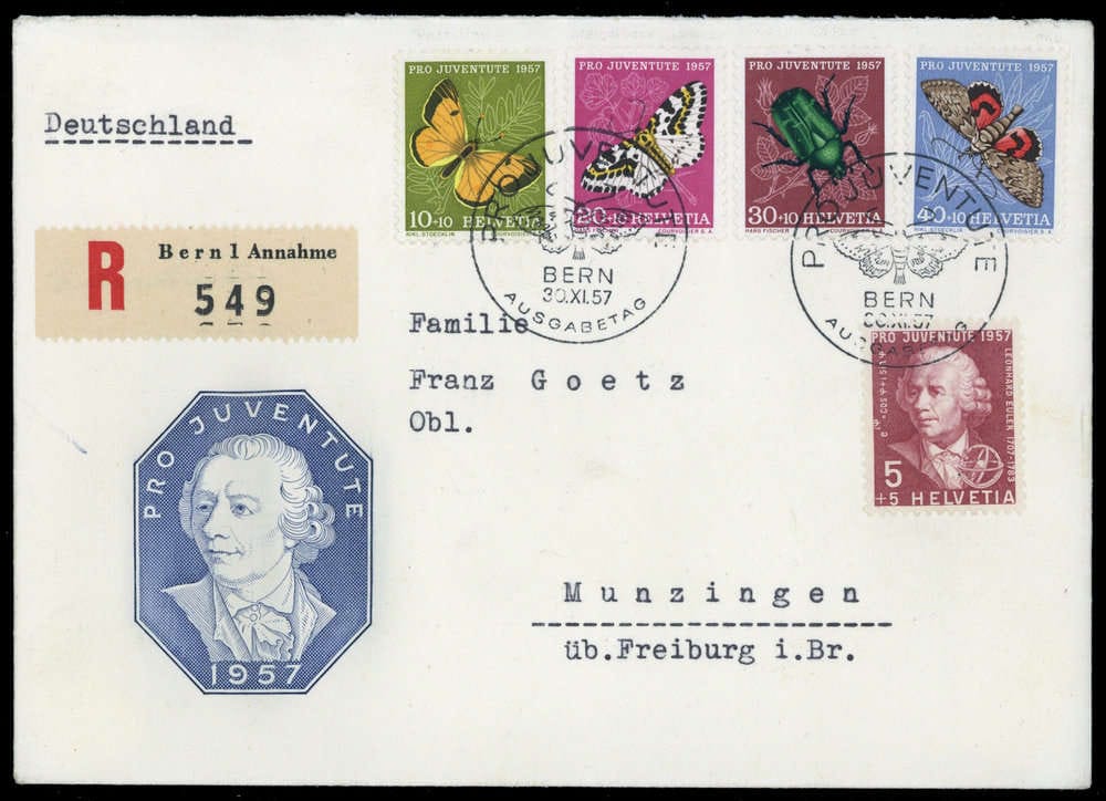 1957, Pro Juventute sur R-Schmuck-FDC avec ESST, rs. Restes de plis